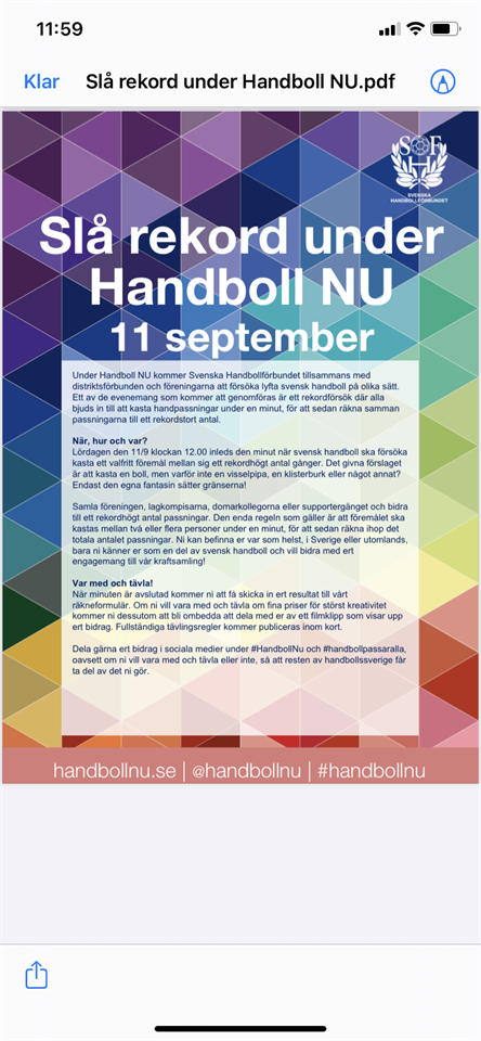 Söndag 10/10 kl 17-18 i Norrgårdshallen är det äntligen dags för Handbollsskolan igen. Ingen föranmälan behövs Handbollsskolan är för barn födda 2013-2015 Föräldrar får gärna sitta på läktaren, där kommer representant från styrelsen hålla lite kort info. Vill du vara med och hjälp till tveka inte att höra av dig till info@vetlandahf.se Vetlanda HF 8 okt 2021 0kommentarer