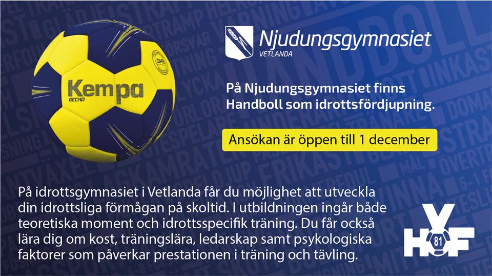 Vetlanda Hf och Njudungsgymnasiet informerar Vetlanda HF 16 nov 2020 0kommentarer